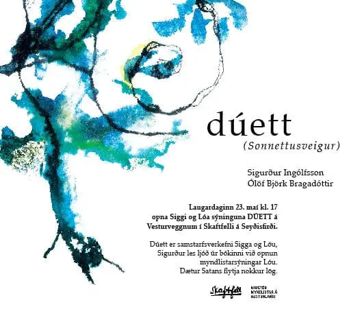 Bókin Dúett kom út fyrir tæpu ári og er samstarfsverkefni hjónanna Lóu, Ólafar Bjarkar Bragadóttur, og Sigurðar Ingólfssonar. Hún málar myndirnar og hann yrkir ljóðin. Myndirnar eru unnar með blandaðri tækni og málaðar á árunum 2007-2008. Sonnettusveigurinn var fimmtán ár í smíðum. Sýningin hefur verið sett upp á nokkrum stöðum, á Egilsstöðum og á jafnréttisráðstefnu á Suðurnesjum og á Akureyri.